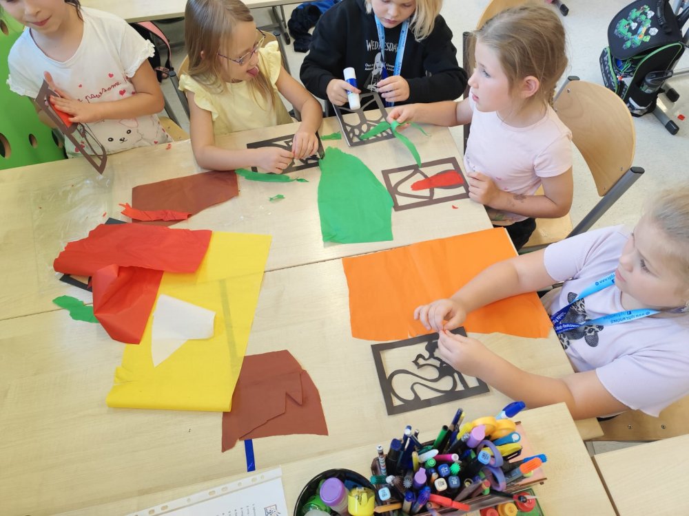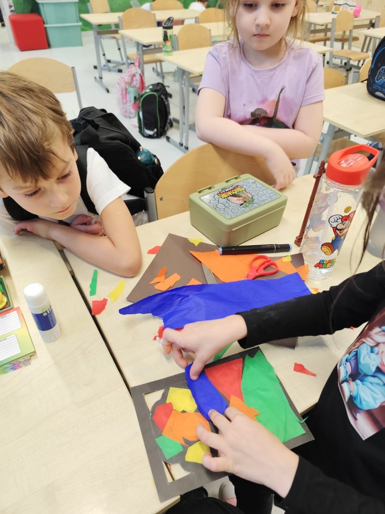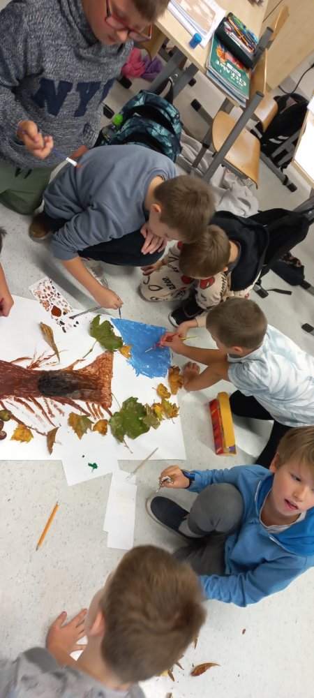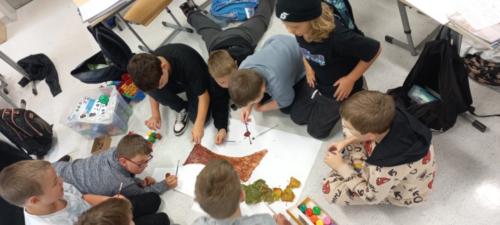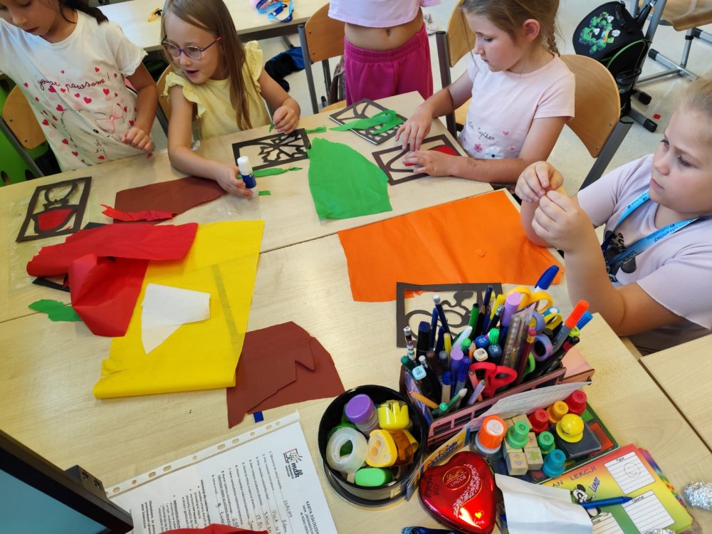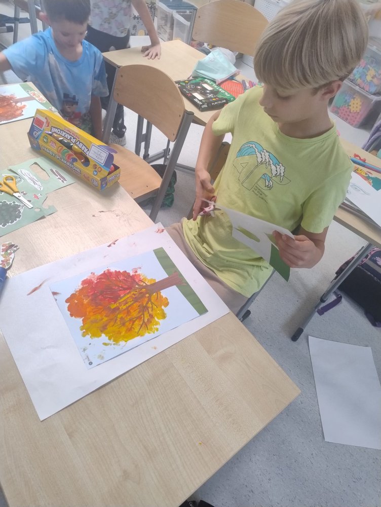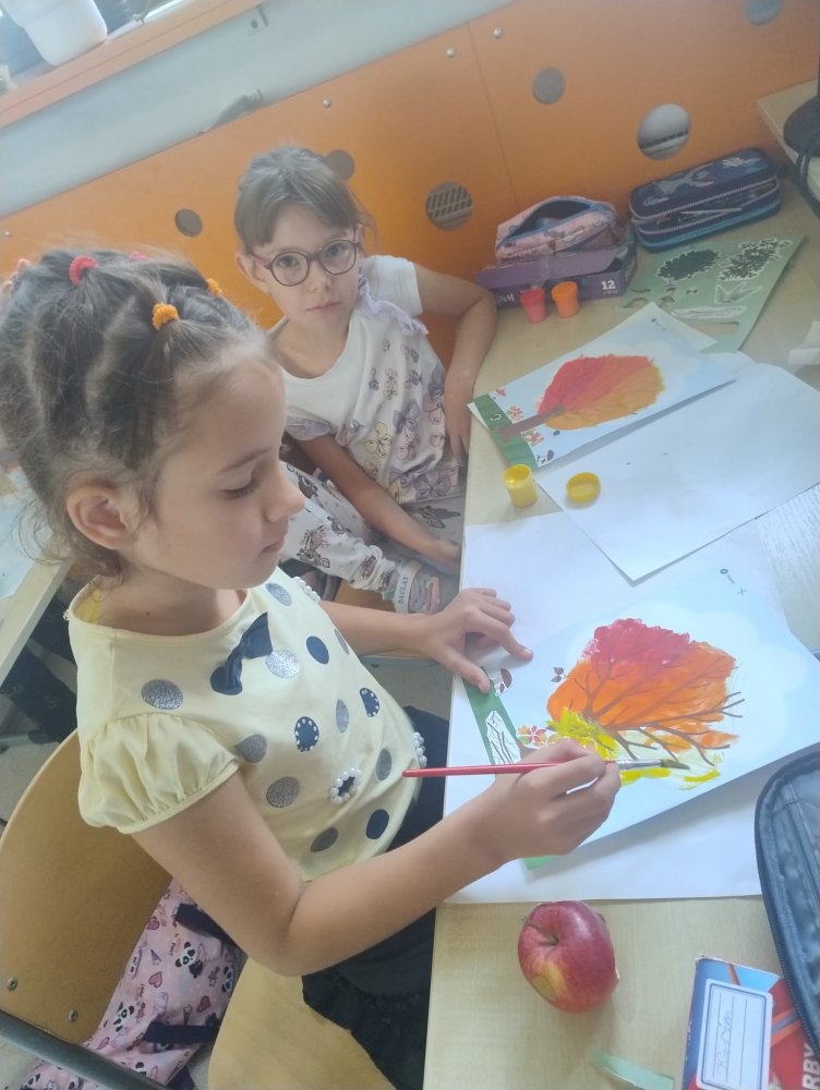 W naszych grupach świetlicowych zagościła już jesień – barwna, radosna i twórcza! Uczniowie powitali tę niezwykłą porę roku kolorowymi pracami plastycznymi, które pięknie ozdobiły korytarze przed klasami. Liście, jabłka, dynie i jesienne drzewa stworzyły prawdziwą galerię pełną ciepłych barw i dziecięcej wyobraźni.
