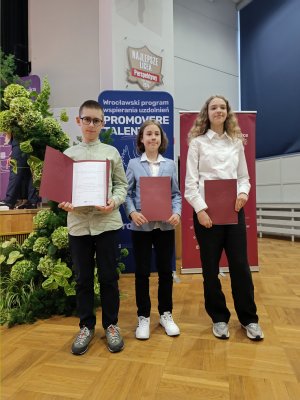 Z przyjemnością informujemy, że 25 września br. odbyła się z udziałem Pana Jacka Sutryka Prezydenta Wrocławia uroczysta Gala Stypendialna PROMOVERE TALENTA w czasie której zostały wręczone stypendia Samorządu Miasta Wrocławia, dla uczniów wyróżniających się wybitnymi osiągnięciami naukowymi. Z wielką przyjemnością informujemy, że stypendium z naszej szkoły otrzymali: