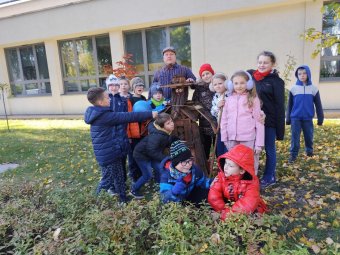 Przed głównym wejściem do szkoły znajduje się parę domków dla owadów, które są umocowane na drzewach. W październiku ustawiona została postać z drewna, która również jest przeznaczona dla owadów, a jednocześnie jest superdekoracją nawiązującą do postaci z legend lub podań.