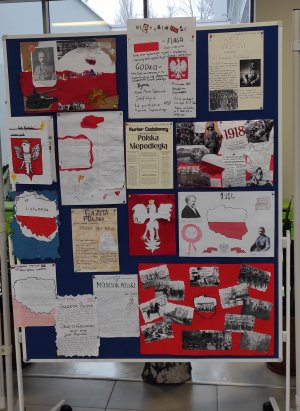 Klasy siódme i ósme zaprojektowały graficznie pierwszą stronę gazety z 1918 r., w której podjęły temat odzyskania przez Polskę NIEPODLEGŁOŚCI i faktów z tym związanych na przestrzeni 123 lat walki o wolność.