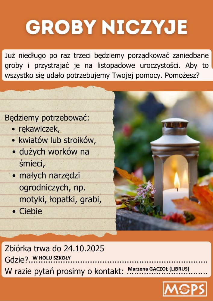 Zwracamy się do Państwa o wsparcie inicjatywy, którą zapoczątkowali pracownicy Zespołu Terenowej Pracy Socjalnej 3, Miejskiego Ośrodka Pomocy Społecznej we Wrocławiu polegającej na zadbaniu o groby osób samotnych, w kryzysie bezdomności.