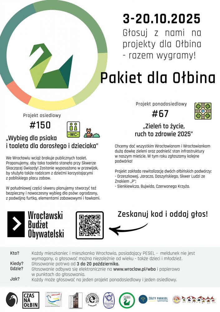 Wrocławski Budżet Obywatelski to wyjątkowa okazja, by razem z dziećmi realnie wpłynąć na to, jak wygląda nasza najbliższa okolica. Jako samorząd osiedlowy w tym roku kolejny raz promujemy dwa projekty w ramach Pakietu dla Ołbina.