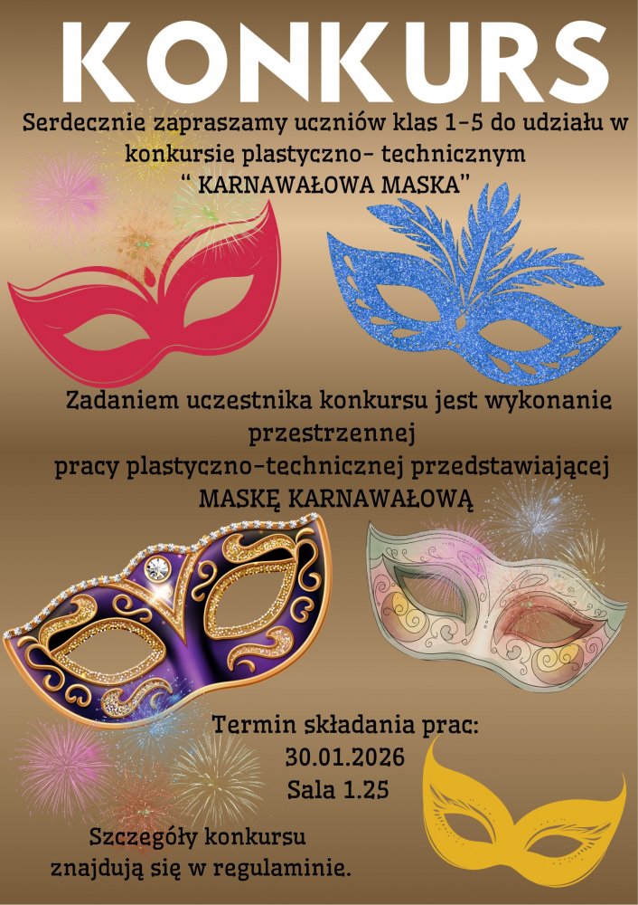 Konkurs plastyczny “ KARNAWAŁOWA MASKA”