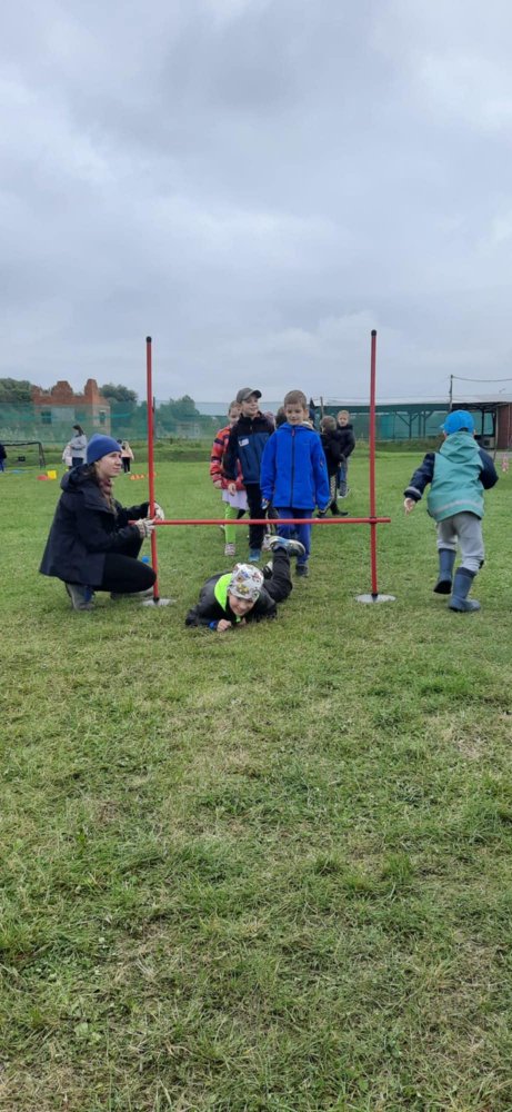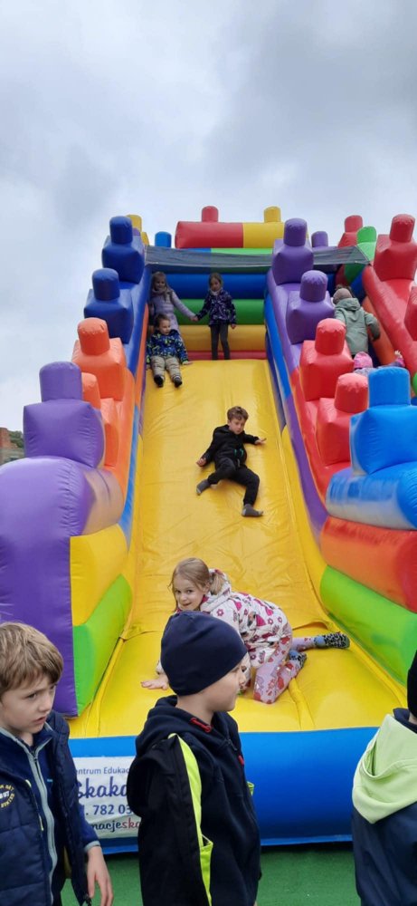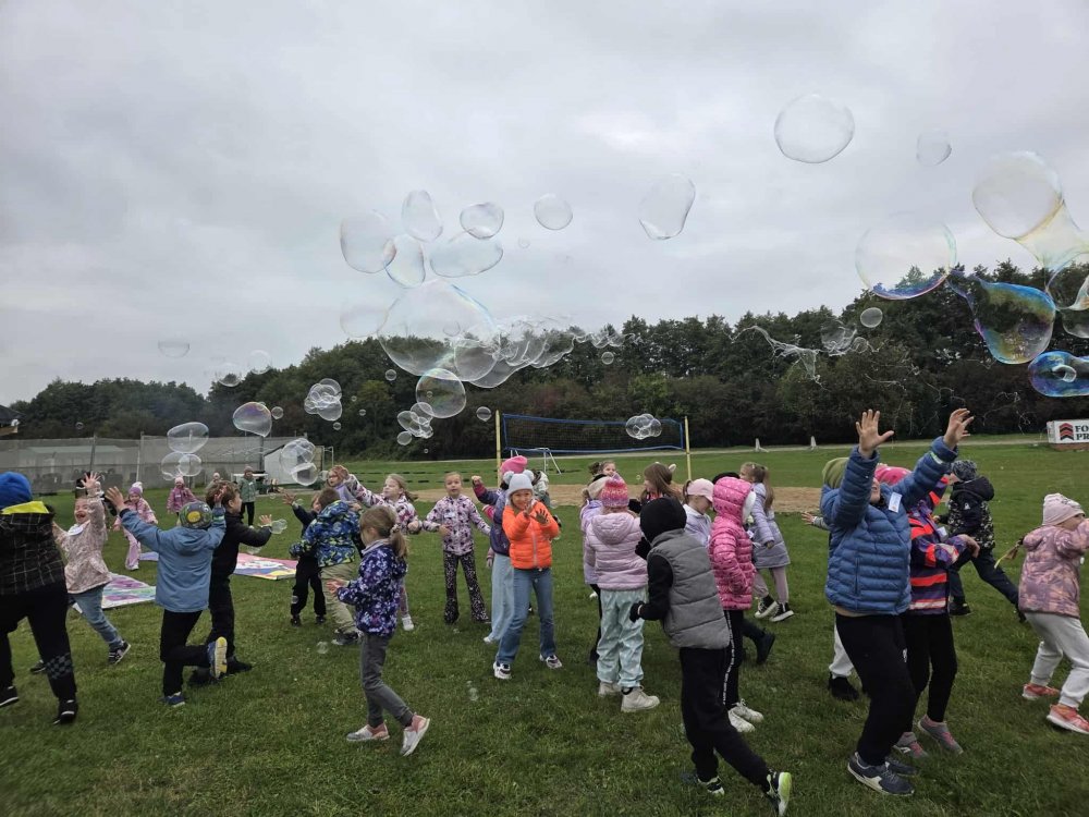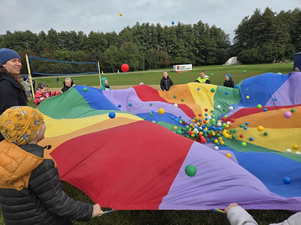 Na miejscu uczniowie zostali podzieleni na grupy i brali udział w wielu ciekawych konkurencjach sportowych oraz zabawach plenerowych, takich jak rzucanie ziemniakiem do celu, zabawy na dmuchanym zamku czy animacje z wykorzystaniem chusty Klanza.