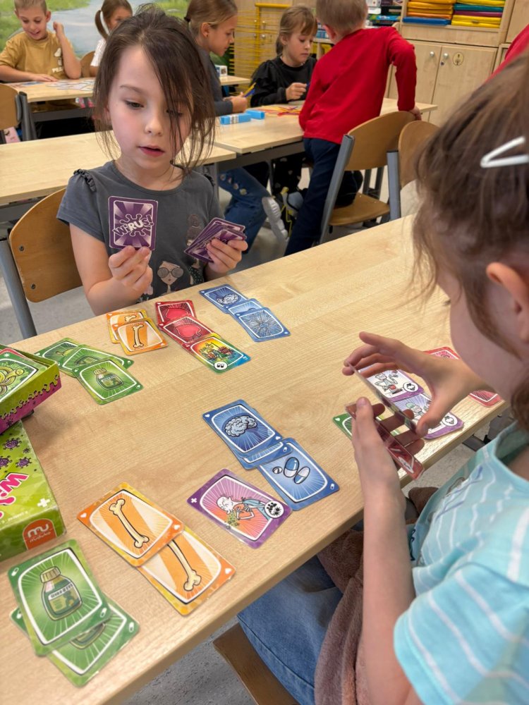 Na stołach królowały klasyki – Chińczyk, Monopoly, Dobble – ale nie zabrakło też nowych tytułów, które od razu zdobyły sympatię dzieci. Planszówki połączyły wszystkich – młodszych i starszych, tych, którzy lubią rywalizację, i tych, którzy po prostu chcieli spędzić miło czas z kolegami i koleżankami.