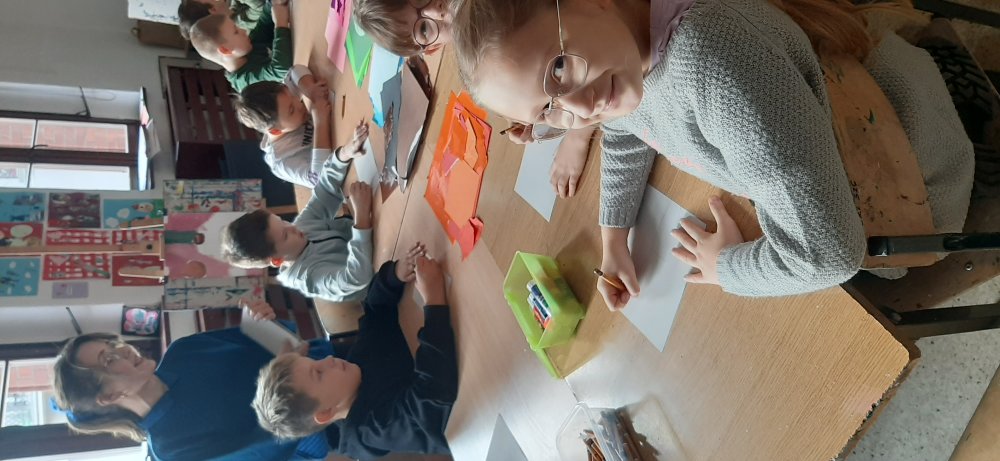 W czwartek klasa 3 d gościła w Centrum Twórczości Talent. Dzieci po raz pierwszy mogły zmierzyć się z szachowymi wyzwaniami oraz manualnymi zabawami przy komponowaniu wydzieranek.