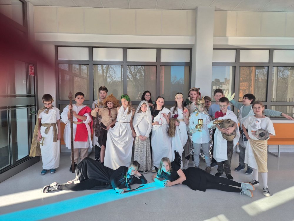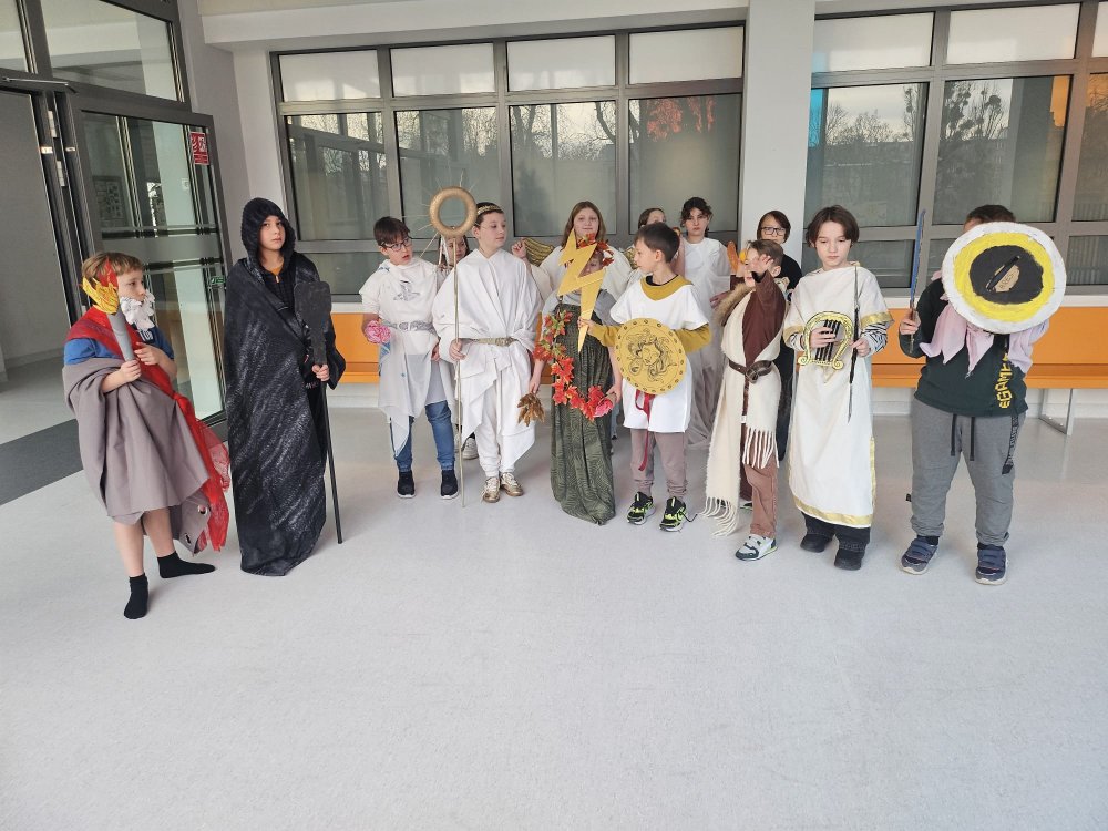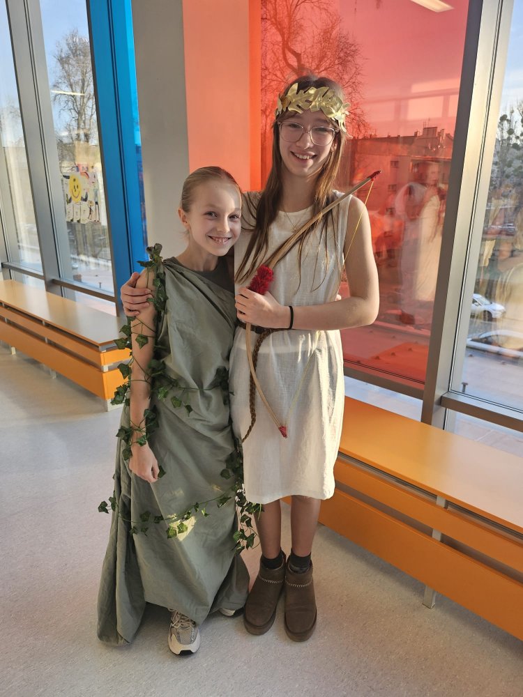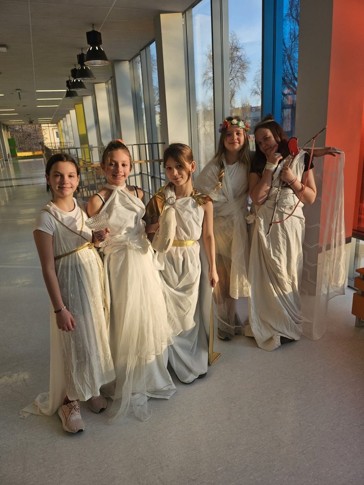 Święta tuż, tuż, ale klasy piąte (5a, 5b, 5d i 5e) przeniosły się na mityczny Olimp razem z naszymi paniami z języka polskiego, Agnieszką Królikowską i Marzeną Gaczoł. Uczniowie przygotowali prezentację bogów greckich - pojawili się Zeus, Hades, Posejdon, Afrodyta, ale także tytan Prometeusz czy heros Herkules.