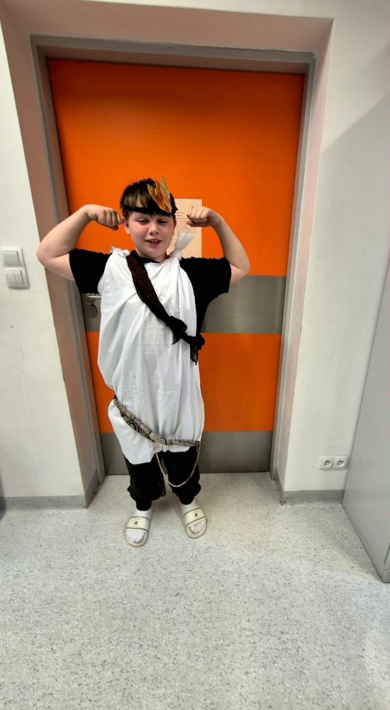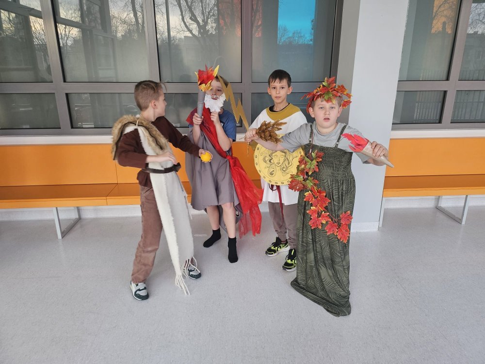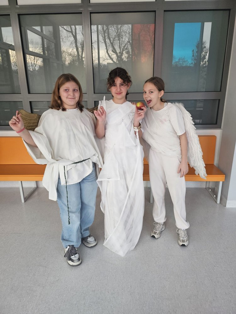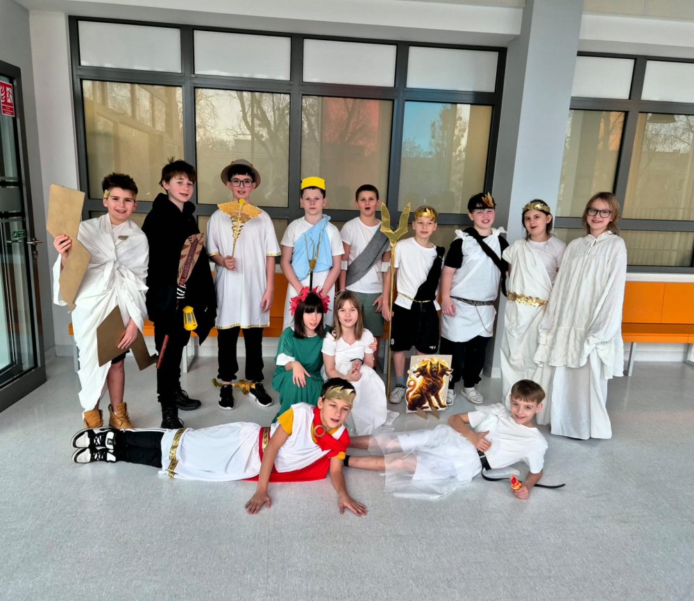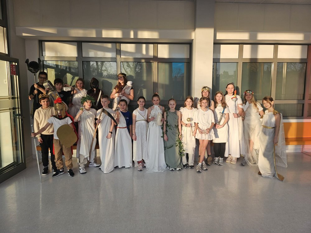 Święta tuż, tuż, ale klasy piąte (5a, 5b, 5d i 5e) przeniosły się na mityczny Olimp razem z naszymi paniami z języka polskiego, Agnieszką Królikowską i Marzeną Gaczoł. Uczniowie przygotowali prezentację bogów greckich - pojawili się Zeus, Hades, Posejdon, Afrodyta, ale także tytan Prometeusz czy heros Herkules.