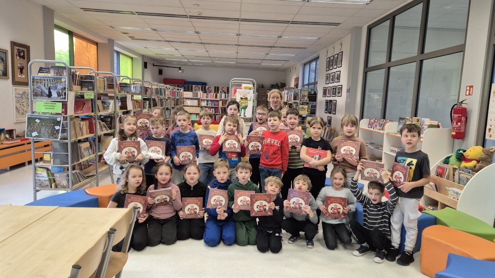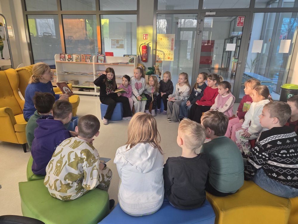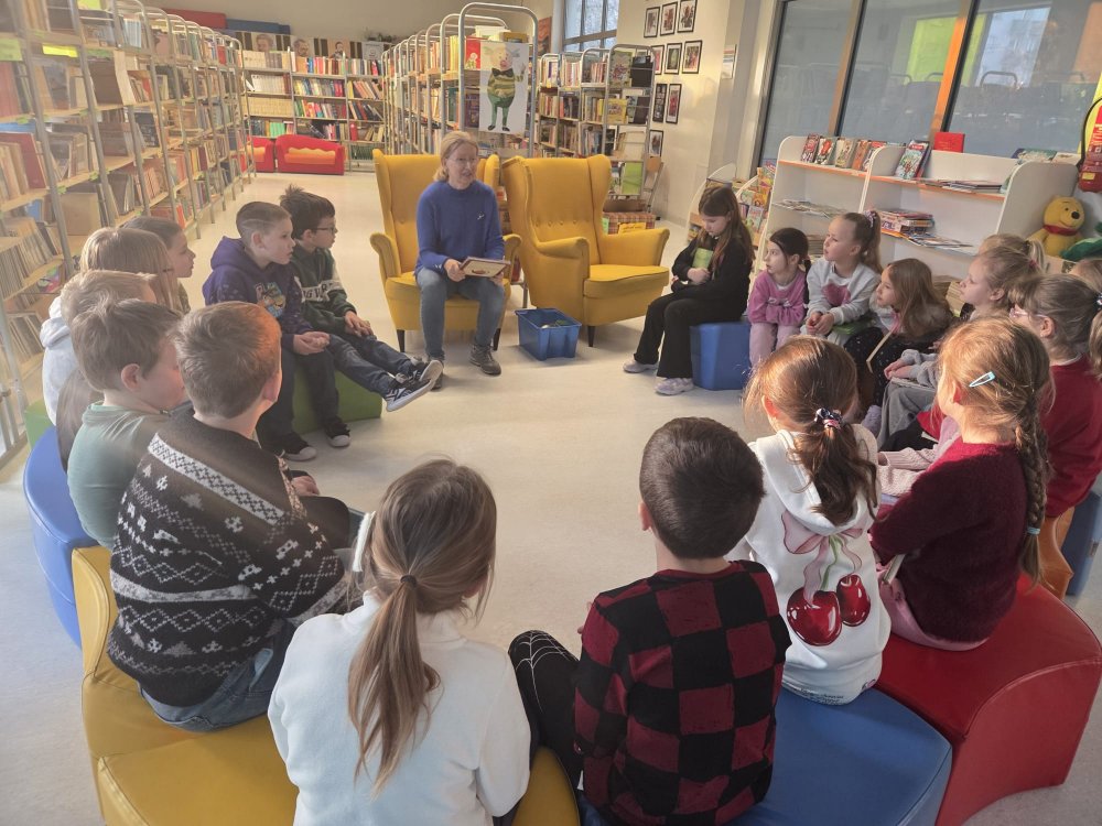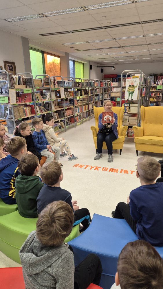 W trakcie spotkania w bibliotece uczniowie wysłuchali fragmentu książki „Wnuczka antykwariusza” Justyny Bednarek i odgadywali, jakie przedmioty zostały ukryte w przygotowanych do zabawy puszkach. Spotkanie zostało zakończone wspólnym, pamiątkowym zdjęciem. Zachęcamy wszystkich uczniów do wspólnego z rodzicami czytania otrzymanej książki i poznawania rodzinnych historii głównej bohaterki Gabrysi i jej dziadka.