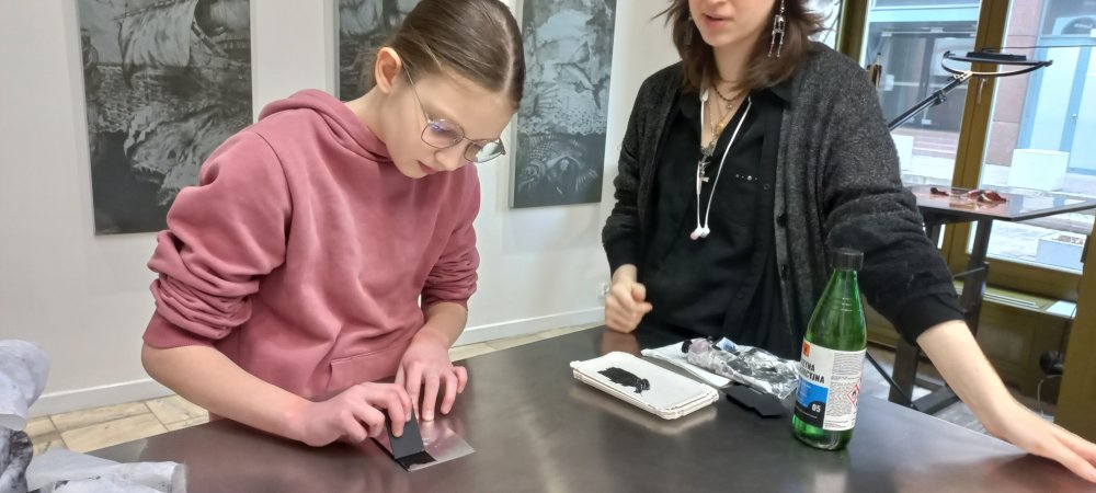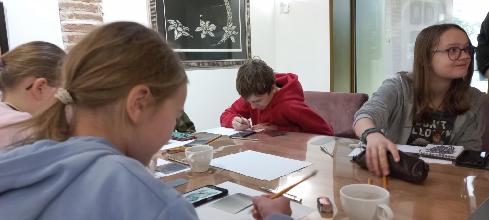 Oprócz stworzenia własnych matryc i odbitek w tej technice, wszyscy zapoznali się z twórczością prof. Przemysława Tyszkiewicza i wysłuchali wykładu na temat sztuk graficznych.
