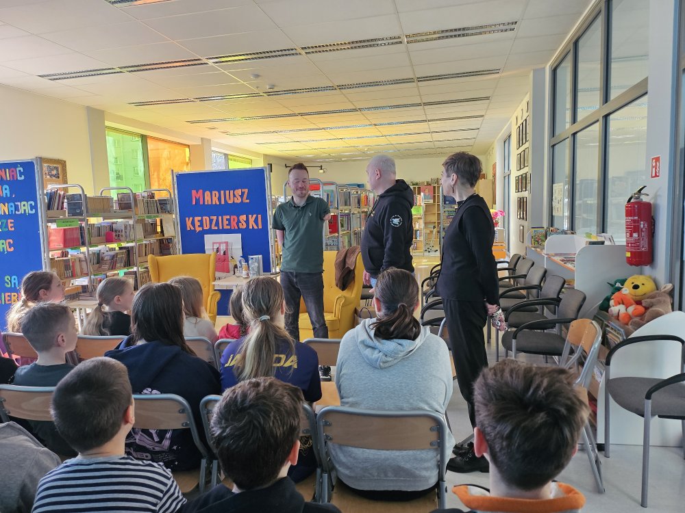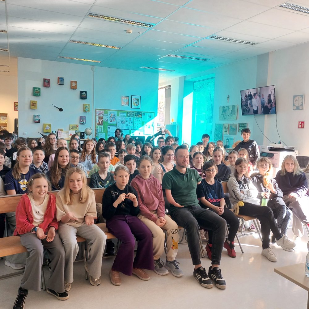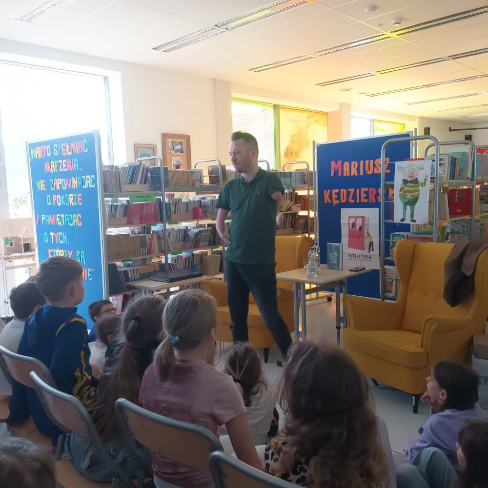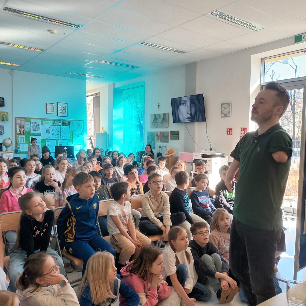 W piątek 13 marca uczniowie klas młodszych oraz wolontariusze klas starszych mieli okazję uczestniczyć w wyjątkowym spotkaniu z panem Mariuszem Kędzierskim - artysta oraz mówca motywacyjny. To było 45 minut wypełnionych po brzegi emocjami. Gość zapewnił naszym uczniom i nauczycielom totalny rollercoaster emocji.