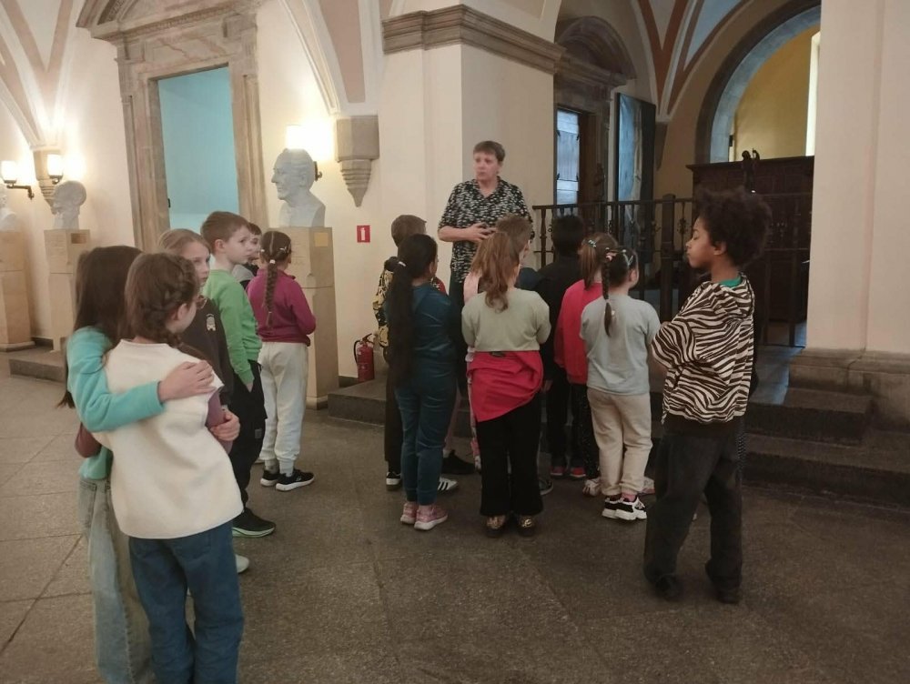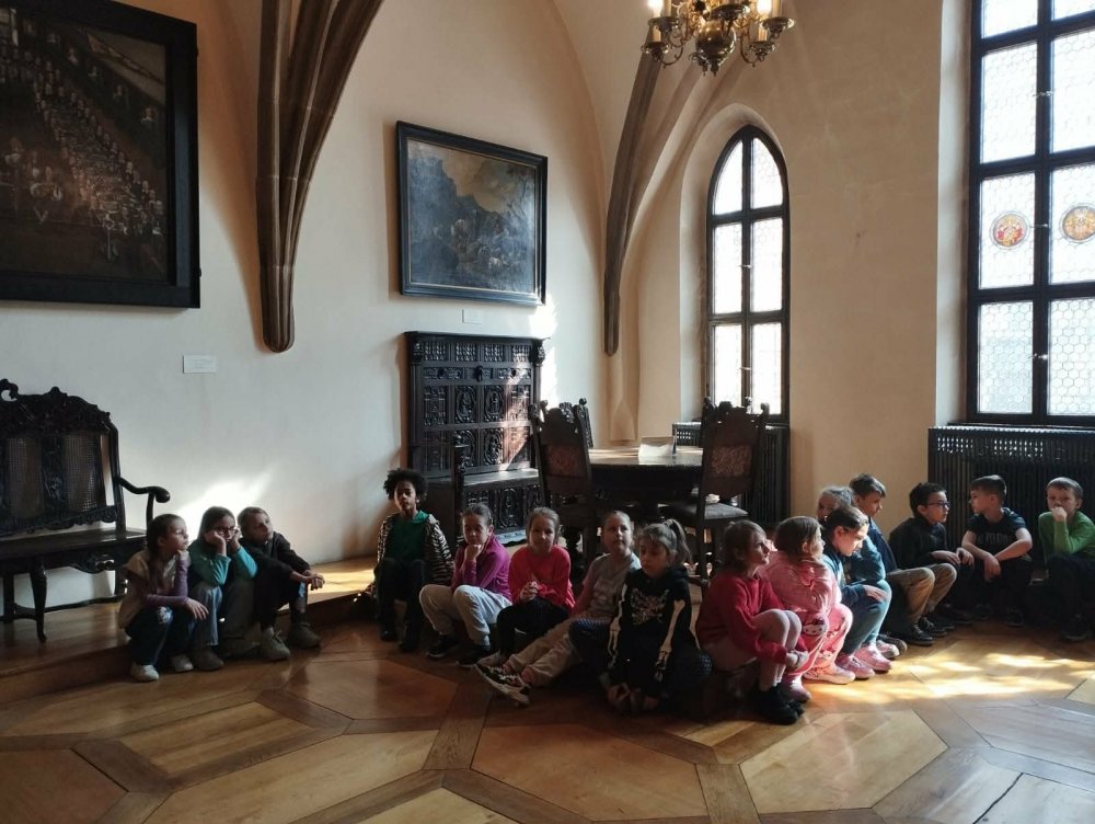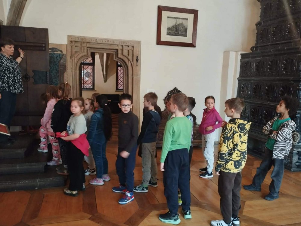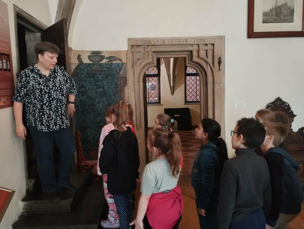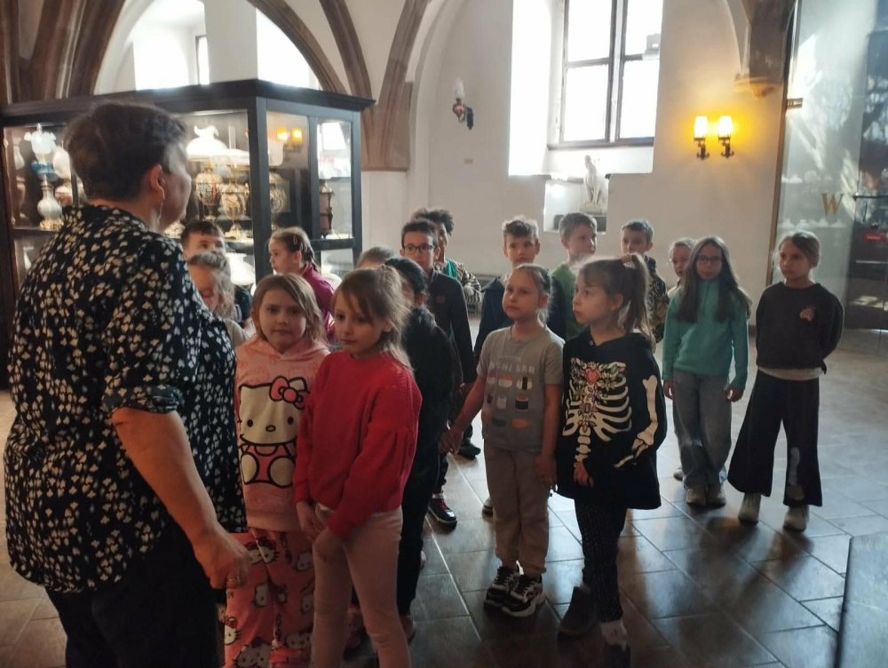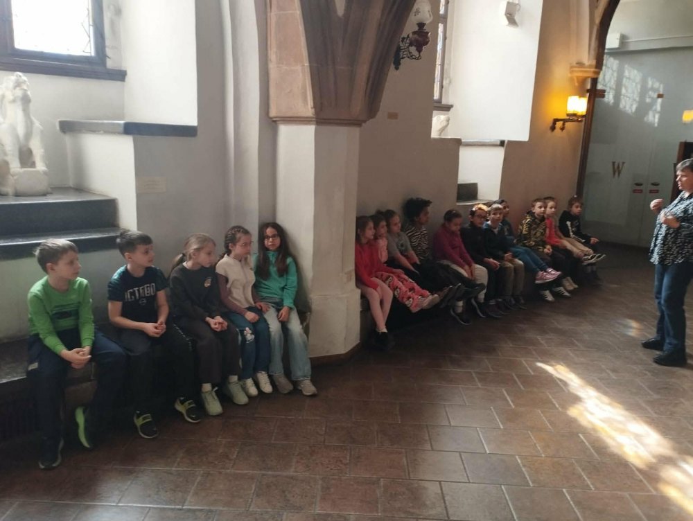 Dzieci z dużym zaciekawieniem i zaangażowaniem słuchały opowieści o legendach związanych z wrocławskim Rynkiem. Wrocławski Ratusz to serce Rynku, w którym baśniowe opowieści splatają się z autentyczną historią miasta. Wycieczka śladami legend to jeden z najpopularniejszych sposobów na poznanie tego gotyckiego zabytku. Uczniowie dowiedzieli się, że ratusz we Wrocławiu pełnił funkcje nie tylko administracyjne, ale także społeczne i kulturalne. W jego wnętrzach odbywały się ważne wydarzenia miejskie, a jego wieża przez długi czas służyła jako punkt orientacyjny w mieście. Podczas warsztatów dzieci miały okazję zwiedzić salę lamp naftowych, w której prezentowanych jest około 150 lamp naftowych z przełomu XIX i XX wieku. Jest to jedna z największych kolekcji tego rodzaju w Polsce. Odwiedzili również Salę Sądową, co wywarło na nich duże wrażenie. Całe warsztaty były bardzo ciekawe i interesujące. Uczniowie mieli okazję przeżyć wspaniałą, edukacyjną przygodę, która na długo pozostanie w ich pamięci. To niezwykle wartościowe doświadczenie pozwoliło im nie tylko poszerzyć wiedzę o historii miasta, ale także rozbudziło ciekawość i entuzjazm do dalszego poznawania dziedzictwa Wrocławia.