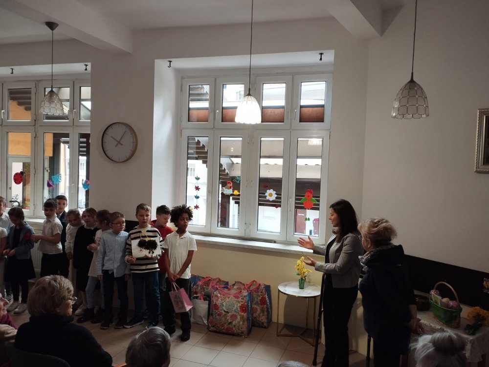Uczniowie wystąpili z programem wielkanocnym z wielką radością przedstawili go mieszkańcom domu. Ponadto wręczyli im własnoręcznie wykonane pisanki świąteczne oraz drobne upominki, przygotowane z pomocą rodziców, które były wyrazem ich troski i pamięci o osobach starszych. Dla uczniów było to nie tylko lekcja empatii i solidarności, ale także okazja do zbudowania prawdziwej, serdecznej więzi międzypokoleniowej. To wydarzenie na długo pozostanie w ich pamięci i stanowi cenny przykład działań na rzecz innych, kształtujących postawę szacunku i życzliwości wobec seniorów.