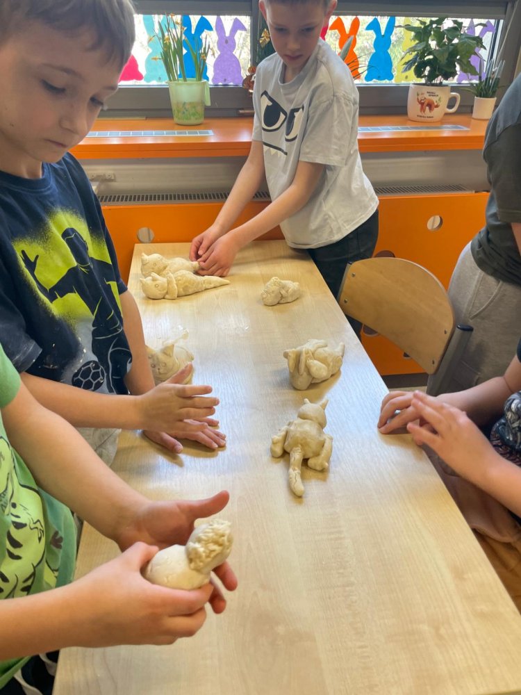 Masa solna okazała się doskonałym materiałem do zabawy dla uczniów klasy 2a. Dzięki niej dzieci mogły własnoręcznie tworzyć wspaniałe prace. Wspólne lepienie sprzyjało również zacieśnianiu relacji między uczniami. Taką formę zajęć zaproponował klasie 2a pan Artur Szabatowski, który poprowadził u nas warsztaty. Prowadzący zapoznał uczniów z podstawowymi produktami i narzędziami niezbędnymi do wykonania figurek. Przygotowanie masy solnej i lepienie figurek okazało się bardzo proste i sprawiło dzieciom wiele radości.