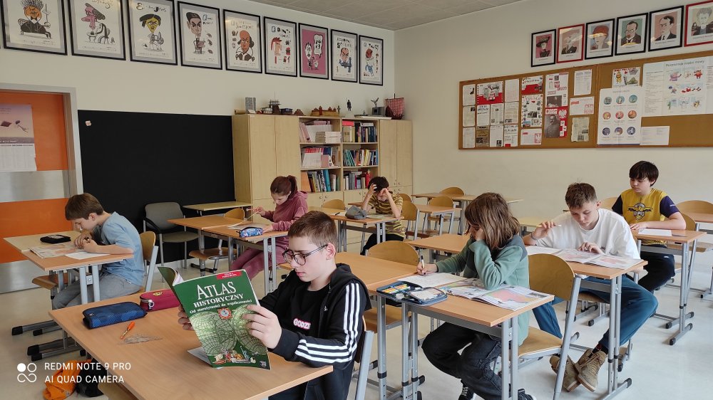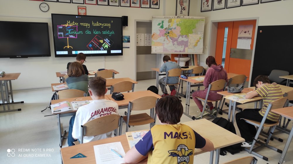 Uczniowie klas szóstych rywalizowali w konkursie o tytuł Mistrza Mapy Historycznej. Pytania były wymagające. Każdy uczestnik musiał zmierzyć się z pracą z atlasem i analizą wielu map historycznych na przestrzeni różnych epok w dziejach człowieka.